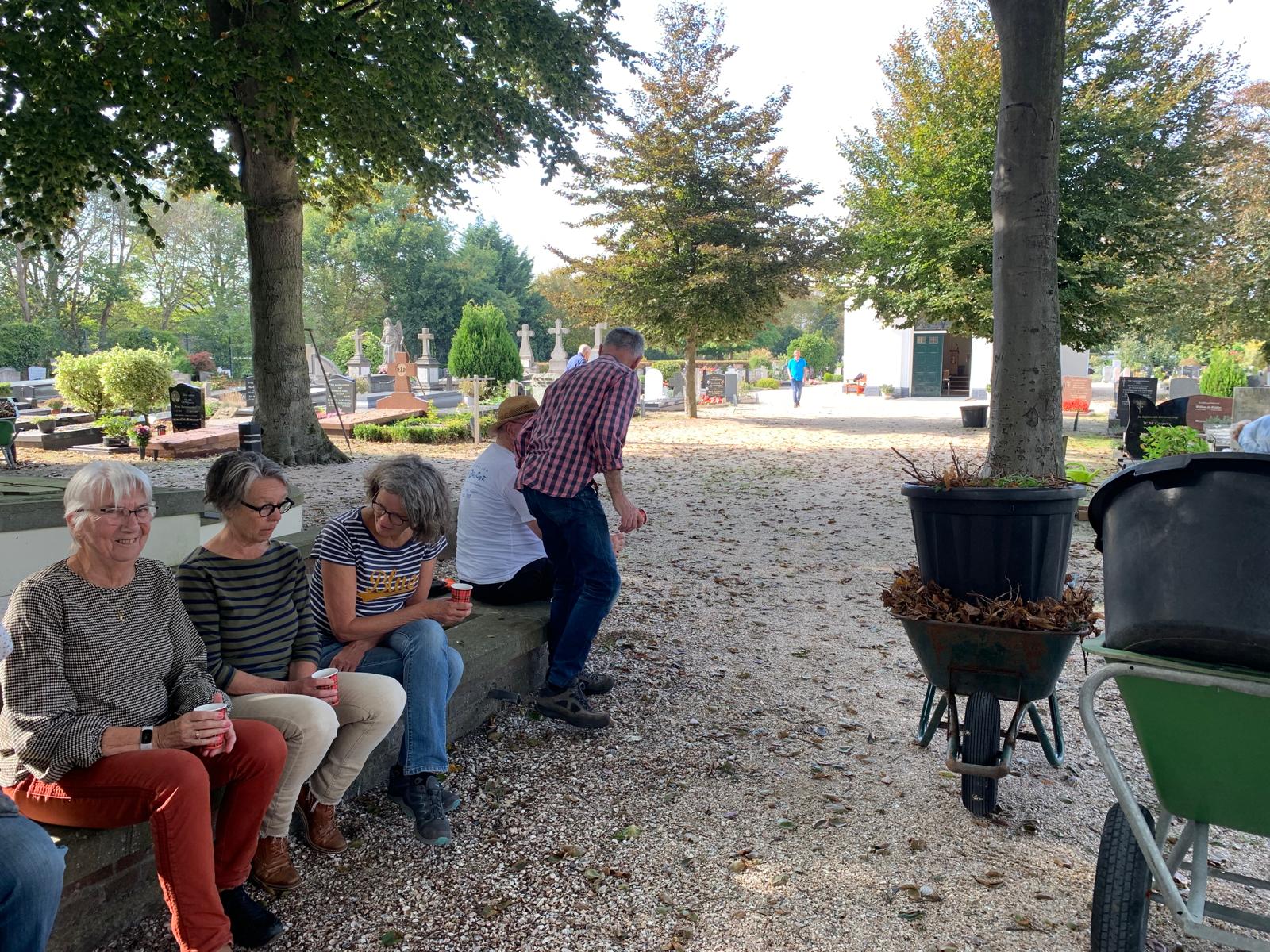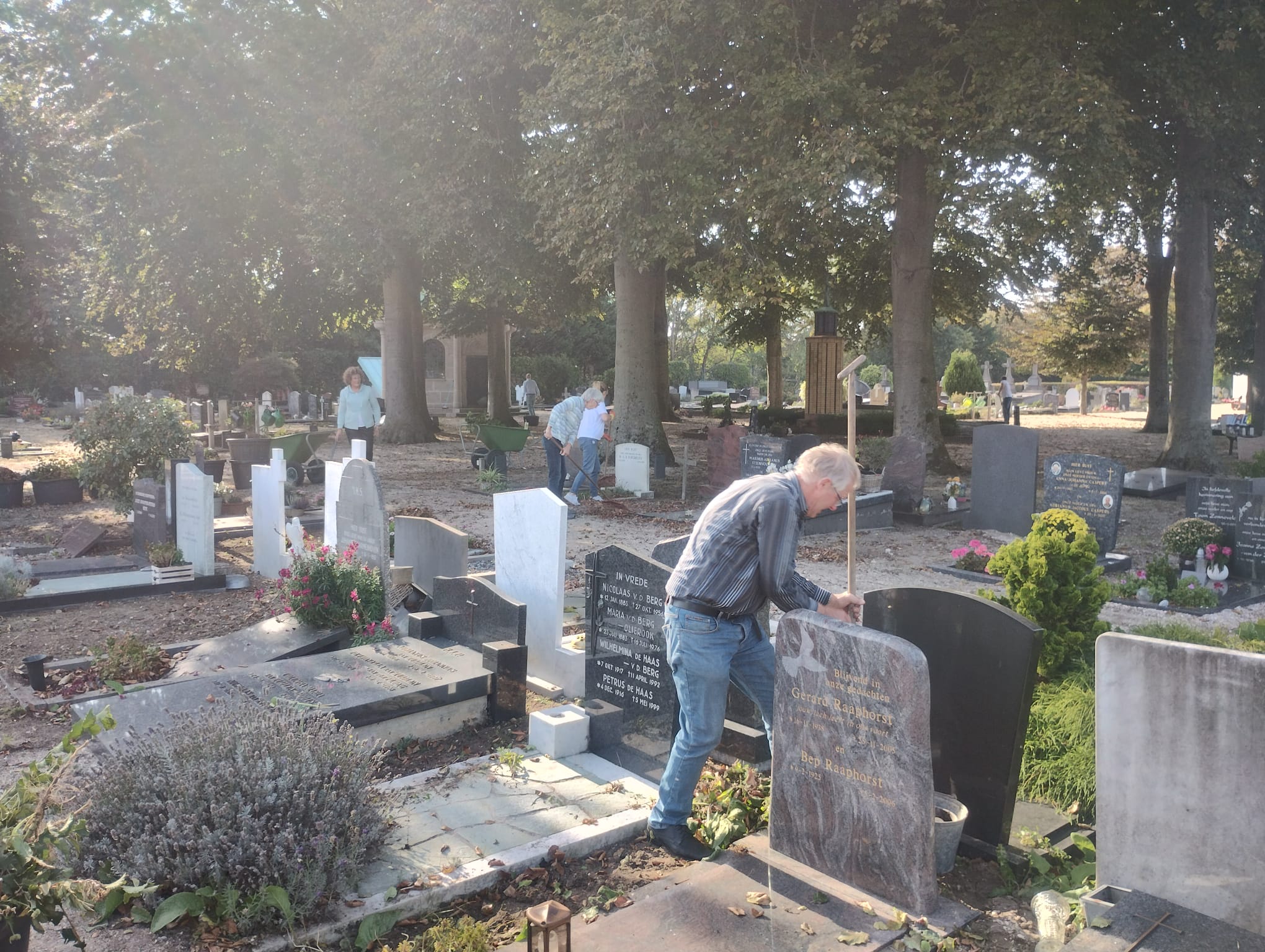 Na de nodige herfststormen hebben de bomen op de begraafplaats aan de Gooweg te Noordwijk deze dan ook aardig hieronder bedolven. En dat ziet er rommelig uit. Als eigentijds werk van barmhartigheid willen wij daarom, in navolging van de Kom & Doe activiteit van 28 sept j.l., de begraafplaats op zondagmiddag 26 oktober ontdoen van deze bladerplaag. Voor koffie, thee en een koekje wordt gezorgd. Wilt u uw eigen hark of schoffel meebrengen? We beginnen om 14.00 en ronden om 16.00 uur af. Helpt u ook mee?
